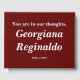 Este simples funeral ou guia memorial apresenta a mensagem "Você está em nossos pensamentos," e o nome e as datas de nascimento/morte do indivíduo que faleceu. Poderia ser usado para registrar desejos simpáticos para os familiares e amigos de alguém que passou recentemente. O texto é branco e o fundo é vermelho escuro.