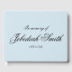 Este funeral minimalista ou guia memorial apresenta a mensagem "Em memória de", juntamente com um nome personalizado, e datas de nascimento/morte. Poderia ser usado para registrar condolências aos familiares e amigos de alguém que morreu recentemente.
