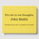 Este respeitável livro de convidados fúnebre/memorial apresenta a mensagem "Você está em nossos pensamentos," e o nome personalizado e as datas de nascimento/morte do indivíduo que passou. Poderia ser usado para registrar desejos simpáticos para a família e amigos de alguém que morreu recentemente.