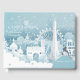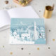 Celebre seu grande dia com esta elegante design com uma cena de inverno em Paris. O fundo mostra a Torre Eiffel, Notre Dame, e o Arco de Triomphe atrás de uma garota marrom em seu vestido segurando flores. A coordenar o convite e os itens de parte disponíveis.