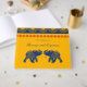 Este livro de convidados do casamento oferece uma visão moderna das cerimônias e recepções tradicionais do casamento indiano com sua ousada paleta de cor amarelo ouro, vermelho e azul real. Seu texto é acentuado por um motivo geométrico e ilustrações ilustrativas de elefantes em azul real.