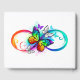 Multicor, brilho, símbolo de infinidade com arco-íris, monarca de borboleta detalhada. Borboleta-arco-íris. Arco-íris infinito.