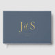 Esta suíte de casamento com seus florais exuberantes e dramáticos de branco cremoso a rosa pincelado, sotaques dourados e belos e poeirentos fundos azuis, cria uma vibração elegante e romântica, dando apenas uma dica do que os convidados podem esperar no seu grande dia. Este design de livro de hóspedes minimalista oferece uma modelo para adicionar facilmente suas iniciais, local do casamento e data em ouro, em um fundo azul escuro. Procure ID1022 para ver todos os produtos nesta suíte de casamento.