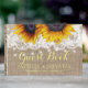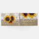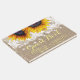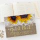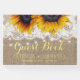 O tradicional livro de hóspedes personalizado, de estilo russo, com grandes girassóis de ouro amarelo, bordas brancas de renda e cordas de luzes cintilantes sobre o fundo bege faux burlap/canvas e com elegante roteiro de tipografia de ouro. Ideal para o verão ou outono | elegante país russo | quintal do jardim ao ar livre casamentos temáticos.