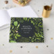 Convide seus convidados de casamento para compartilhar seus desejos e sabedoria com este livro de hóspedes botânico com seus nomes e data de casamento cercado por uma coroa de folhas botânicas de cor aquática verde em um fundo preto escuro e elegante. Personalize a coluna com texto personalizado adicional. Projetado para coordenar com a nossa coleção de casamento do Jardim da Meia-Noite.