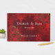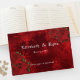Lindo livro de registro de convidados que tem convites e cartões de RSVP correspondentes. Vermelho profundo de Natal com flocos de neve monocromáticos e flores de Poinsettia vermelhas. Personalize o texto e a fonte de acordo com suas especificações.