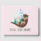 Este lindo e feminino livro de visitas para chá de bebê apresenta uma bela lontra desenhada à mão com flores e algas. Este adorável design moderno também inclui um espaço para você adicionar o nome da mãe e uma data. O design perfeito de vida selvagem caprichosa para o seu chá de bebê!