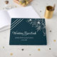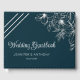 Lírios brancos simples e bonitos desenhados à mão e linhas diagonais brancas em fundo azul escuro. Lírios e linhas estão nos cantos superiores