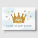 A little prince is on the way! Boy baby shower with gold crown and silver and gold stars with dreamy blue watercolor background