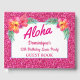 Apresenta um brilhante "Aloha" tropical e flores de hibisco, e um fundo de brilho falso rosa quente. Personalizado com suas informações. O texto pode ser editado ou excluído conforme desejado. Perfeito para todos os tipos de eventos! Suprimentos e convites de festa combinando em minha loja. Design©2019 Rosalind Moore, Cherry Lane Designs.