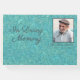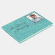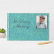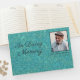 Adicione uma foto favorita do seu amado, juntamente com o nome do cheio e as datas de vida, a este lindo Livro de Convidados "In Loving Memory". O pano de fundo tem a aparência de couro cabeludo gravado de luxo, com uma cor de talho/turquesa maravilhosa, com o texto todo em cinzas profundas. A frente apresenta uma fonte elegante de script, enquanto uma fonte nítida sans serif foi selecionada para a coluna para ser facilmente legível na prateleira.