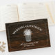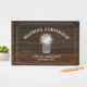 Um livro de convidados de casamento com um lenha de barnwood inspirou a ilustração de um jarro de hálito de bebê na frente. Personalize o texto na frente para incluir nomes e data do casamento. Convites de casamento e outros produtos de coordenação estão disponíveis na Paperie de Jill.
