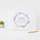 Bênção materna ou Bênção que colhe penas e miçangas coloridas em matizes rosas, roxas e azuis num livro de hóspedes branco. Ideal para partilhar as suas bênçãos para a sua mãe ser e para o próximo parto. Adicione sua própria mãe ao nome e aos detalhes. Outros itens de bênção de bebê correspondentes disponíveis. Pintura a aquarela original e design por Sarah Trett para www.mylittleeden.com