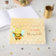 Elegante, divertida chá de fraldas de verão celebrando uma menina ou neutra em gênero. Fundo amarelo, branco com um padrão de mel. Decorado com uma abelha bebê sorridente e bonita segurando um chocalho. Com o texto: Mamães para Bee escritas com um moderno estilo escrito à mão. Modelo para que a mamãe seja o nome. Letras castanhas e vermelhas. Coloque seu próprio texto: Voltar: padrão honecomb.