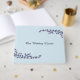 Um livro encantador para os seus convidados de casamento assinarem. Um fundo azul claro com delicados ramos de flores azuis marinhos. Na frente e atrás.