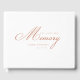 Específico do cliente, memorial, elegante, simples fonte de escrita manual "Na memória adorável" de cor laranja-castanho-macia, livro de hóspedes fúnebres. Disponível em cores e tamanhos diferentes.