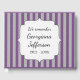 Este design de guia apresenta listras roxas e cinzas, juntamente com um nome personalizado e anos de nascimento/morte. Poderia ser usado para gravar participantes de um funeral, e todas as memórias excelentes que eles têm do indivíduo recentemente falecido.