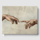 A Criação de Adão pela Pintura Masternote de Michelangelo - A Criação de Adão é uma das pinturas mais famosas do mundo, criada pelo mestre Michelangelo em Roma. A Criação de Adão é um fresco clássico que Michelangelo pintou no Vaticano de Roma, na Capela Sistina, em 1511-1512. A Criação de Adão impressão em nosso presente é uma porção do quadro fresco, mostrando toda a criação do Homem no Livro Bíblico da Gênesis, onde Deus (à direita) dá vida ao primeiro homem, Adam (à esquerda). A pintura mostra o quase toque das mãos, entre Deus e Adão. A imagem é uma pintura crônica do Renascimento. Michelangelo mostra Deus como um velho homem de cabelos brancos e barbudos brancos, vestindo uma longa roupa branca. Tanto Deus como Adão têm os braços estendidos um ao outro, como se Deus estivesse gerando uma faísca de vida no novo homem Adão. A pintura de Michelangeo mostra a semelhança do Homem com Deus, mostrando que Deus criou os humanos em sua própria imagem.
