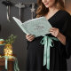 Este elegante pastel Mint Spooky Cute Bats Halloween Chá de fraldas Guest Book mostra um morcego bebê desenhado à mão voando entre um cheio noturno de estrelas e luas amarelas no céu, todas sobre um fundo pastel de menta e enfeitado com cantos teares. A parte de trás apresenta uma foto. Personalize com os detalhes do evento no cobrir frontal e na associação.
