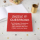 Modelo personalizado personalizado do GUESTBOOK de 11" x 8" com EXEMPLO DE IMPRESSÃO DE FUNDO VERMELHO NA FRENTE (alterar cor, substituir ou limpar). Design, crie, faça o seu. Sua foto, imagem, texto, logotipo, gráficos no impressão a cores do cheio nos cobrir frontal e traseiro e a coluna do guia. 61 folhas; 122 páginas. Cobrir de duro frontais e traseiros, laminados, com acabamento brilhante, cobrir impresso em papel fotográfico de halodo prateado. Páginas escrevendo de cor creme de 70 lb, interiores não personalizáveis, com folha de revestimento de velol - frente e verso. Caixa exterior protetora incluída - não personalizável. Melhor para lembranças de um casamento, chá de fraldas, graduação, acordar funerário e para uso em hotéis e casas de hóspedes.
