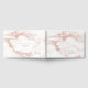 Um fundo de abstrato que lembra o mármore brilhante em tons de ouro rosa é o pano de fundo para o texto elegante e os layouts modernos de design nos pedaços desta bela suíte de casamento. O Livro de Convidados do casamento mostrado aqui mostra texto de roteiro e mármore elegante. Adicione facilmente seus próprios nomes, data de casamento e mensagem usando o modelo fornecido. Procure ID816 para ver outras peças e opções de cores para este conjunto.