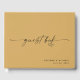 Preserve the heartfelt messages from your wedding guests in this modern and minimalist guest book. The elegant script "Guest Book" is paired with a subtle heart icon against a gold background, offering a sophisticated touch. This design is perfect for couples seeking a clean and refined aesthetic for their wedding day. The customizable area below allows for the couple's names and wedding date to be elegantly displayed, making it a unique reflection of your union. Your guests will love leaving their notes and well-wishes in this beautiful, understated keepsake.