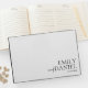 Nosso livro de convidados de na moda adiciona o toque perfeito para sua decoração de casamento moderna. Com seu design preto elegante, ele complementa perfeitamente a estética minimalista do seu tema de casamento preto e branco. Este elegante livro de hóspedes oferece uma maneira sofisticada para os seus entes queridos de deixar mensagens e desejos sinceros, criando um eterno que apreciará para sempre. Ideal para casais que apreciam o design refinado e contemporâneo, este livro de hóspedes é uma adição simples mas significativa ao seu dia especial, misturando-se perfeitamente com a elegância da sua celebração de casamento.