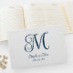 Livro De Visitas Monograma de Casamento Bonito com Curly marinho Az