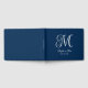 Livro De Visitas Monograma de Casamento Bonito em Branco e Azul com