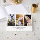 Livro de Convidados de Casamento Elegante Personalizado com preto e branco e monograma de cinza, noiva e noiva e data de casamento. Há 3 fotos na frente e uma foto maior nas costas.