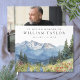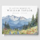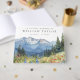 An elegant celebration of life, funeral guestbook, featuring a watercolor mountain floral scene with the loved one's photo on the reverse. Designed by Thisisnotme©
