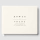 Um elegante design do livro de hóspedes do casamento, com os seus nomes e a data do casamento em letras negras negras negras negras negras, em fundo de marfim de creme rico. Adicione texto personalizado adicional à coluna.