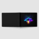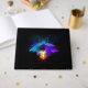 Voz mecânica, antiga, com lâmpada e asas finas brilha cor de laranja, roxo, turquesa sobre fundo preto. Estilo Steampunk.