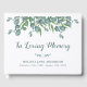 Eucalyptus Memorial Sympathy Funeral Guest Book. Este livro de hóspedes fúnebre apresenta um eucalipto verde moderno, nome e datas, num design branco. Personalize a coluna com mensagem e nome. Este moderno e elegante livro de convidados botânicos é um perfeito guardião para o memorial, celebração da vida e funeral. COPYRIGHT © 2020 Judy Burrows, Black Dog Art - Todos Os Direitos Reservados. No Loving Memory Eucalyptus Memorial Funeral Guest Book