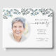 Belo sábio de aquarela e um livro de heucalipto verde-verde-azul com um livro de hóspedes com uma foto em memória do seu amado. Titular IN LOVING MEMORY (MEMÓRIA DE AMOR) na tipografia moderna de scripts manuscritos e personalizado com nome e datas. DICA DA FOTO: Para obter resultados mais rápidos/melhores, escolha uma foto com o assunto no meio e/ou pré-plante-a em uma forma de retângulo vertical ANTES de carregar e usar a guia MUDAR ao lado da foto de amostra na seção PERSONALIZAR. Entre em contato com o designer por meio do Zazzle Chat ou makeitaboutyoustore@gmail.com se você quiser que este design seja modificado.