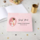 Um livro de hóspedes chá de panela. Projetada com uma ilustração de uma noiva sorridente segurando um buquê de flores em seu vestido branco de rico e vestindo um véu. Defina dentro um quadro oval cor-de-rosa com uma borda dimensionada. O fundo é uma imagem de aquarela cor-de-rosa-macia.
