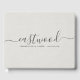 Um monograma moderno e elegante e minimalista do nome do casal no tipo de serif de safra, contrastado com uma letra escrita à mão num fundo de efeito de linha falsa branca. Livro de convidados elegantes para recém-casados. Misturando vintage e estilos modernos.