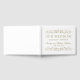 As espirais decorativas e o florescimento enrolaram este elegante vintage inspirou um livro de convidados de casamento com monograma personalizado. Design de ouro branco e antigo.