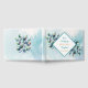 Nosso livro de convidados de casamento. Folhagem verde-senada, azul e dourada de erva botânica Eucalyptus.