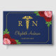 Nurse graduation with pink and red roses against a navy blue background. Gold caduceus and script typography. Photo template via Pixabay licensed under CC0 and must be replaced with your own photo.