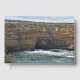 A dramatic view of a part of The Razorback, one of the Great Ocean Road’s most iconic coastal formations in Australia. Towering limestone cliffs rise sharply above swirling Southern Ocean waves, their warm ochre layers contrasting with the deep greens and blues of the sea. The textured rock face, ocean cave, and narrow waterfall add striking natural detail to the rugged landscape. This atmospheric photograph captures the wild, untamed beauty of Australia’s southern coastline—perfect for lovers of travel, nature, and coastal scenery.
