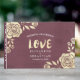 Modelos do Guestbook de Casamento - Rosas de folhas de ouro maravilhosas modernas e fundo vermelho brilhante da Vintage. Um Design Perfeito Para O Seu Grande Dia! Todo Estilo De Texto, Cores, Tamanhos Podem Ser Modificados Para Ajustado Das Suas Necessidades.