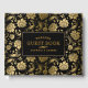 Dourado padrão Elegante dos damascos florais sobre um fundo preto. Modelo personalizável do livro de convidados.