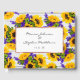 Uma madeira branca rústica de um país moderno, com padrão floral de girassol roxo e amarelo. Este elegante design de moda floral chic ao ar livre é perfeito para qualquer garota de na moda clássica e sofisticada ou qualquer outra pessoa. Este design é perfeito para o evento de tendências e na moda. Personalize este design com sua própria mensagem e informações personalizadas. Todas as designs são impressas.