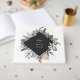 Design botânico tropical em volta de diamante de cinza escura com texto branco.