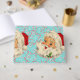 Doce Vintage Papai noel de um Papai Noel Jolly contra um fundo turquesa com hortelã-pimenta e doces.