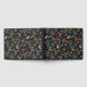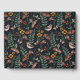 Este livro de hóspedes apresenta beija-flores, pássaros, borboletas, mariposas, samambaias, cogumelos e flores em um fundo azul escuro.