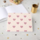 Este design apresenta um padrão repetido de corações de amor cor-de-rosa contra um fundo creme.
