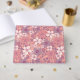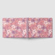 Este livro de hóspedes apresenta flores e folhas em tons pastéis de rosa e roxo sobre fundo rosa.