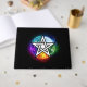 Pentagrama luminoso desenhado artificialmente com cinco elementos mágicos, água, terra, fogo, astral, ar sobre fundo negro. Pentagrama Wiccan. Wicca